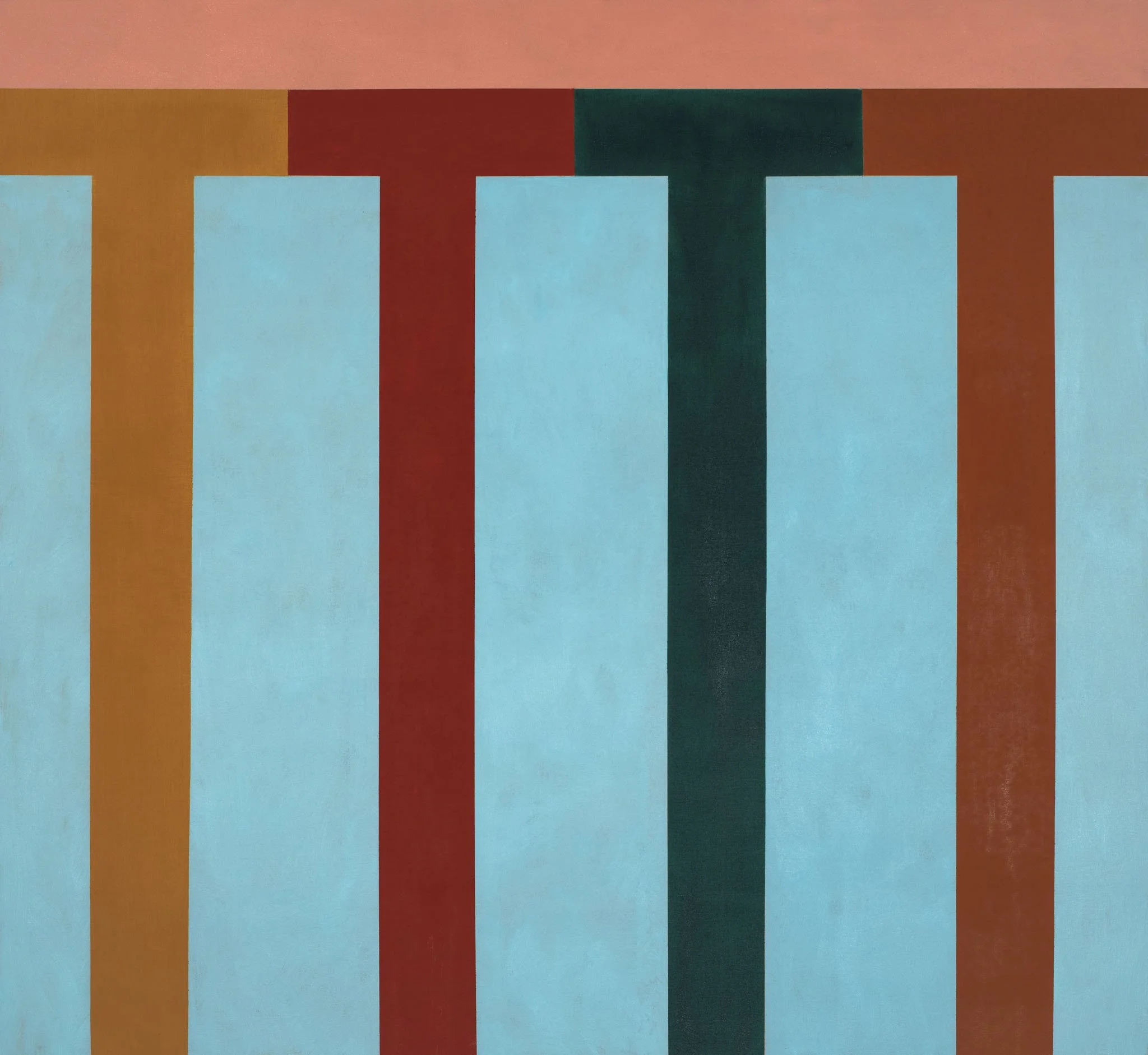 “Helm Contemporary showed “Loggia,” recent works by Kim Uchiyama, distillations of her responses to classical architecture, seen in bright Mediterranean light, into subtle geometric relationships and frankly gorgeous hues…Despite the elusive references to architecture, there’s no sense of figure and ground, but, rather, an affirmation of the continuous surface of the canvas, syncopated by color…The apparent simplicity and seemingly graspable logic of Uchiyama’s severe, seductive paintings are deceptive. There’s a lot to look at that demands and rewards long, close attention.”